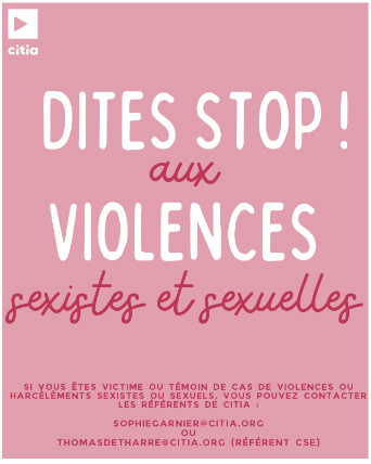 La sensibilisation aux enjeux du harcèlement, des violences sexuelles et sexistes et des discriminations prend plusieurs formes au sein de CITIA :