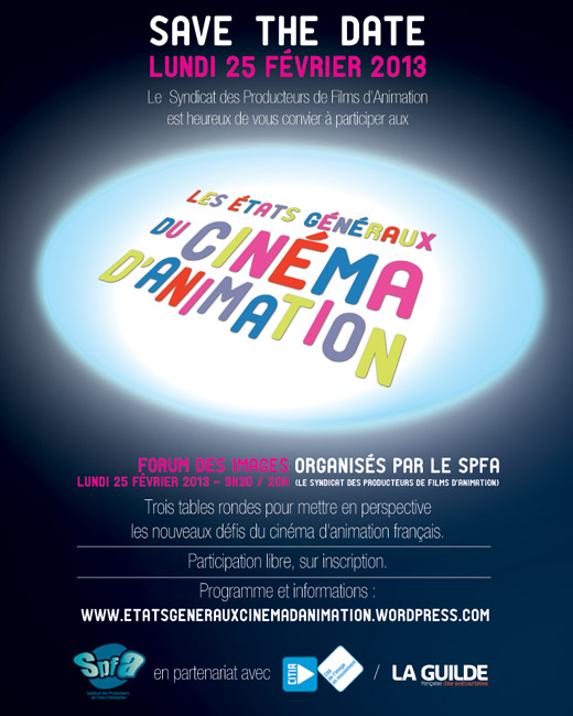 Initiated by the SPFA, the États généraux du cinéma d’animation will take place at the Forum des Images in Paris, Monday 25th February, from 9:30 to 8:30 pm.